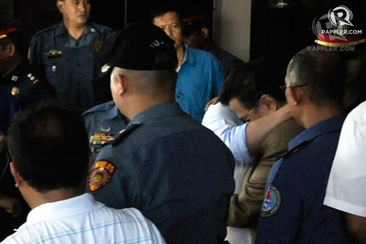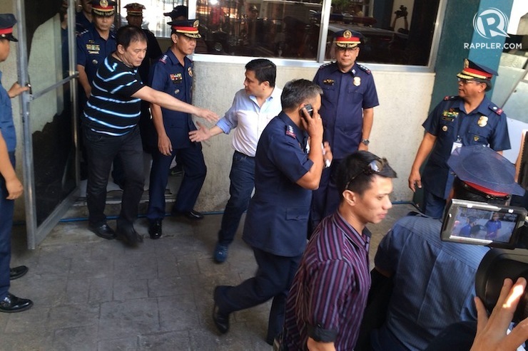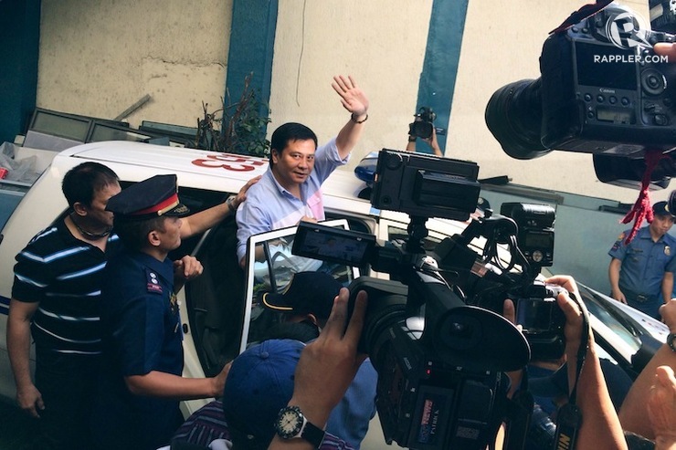 MANILA, Philippines – Unlike his friend, fellow actor and fellow accused Senator Ramon "Bong" Revilla Jr, Senator Jinggoy Estrada turned himself in to the police without a song booming from a mobile sound system or a throng of sympathizers.