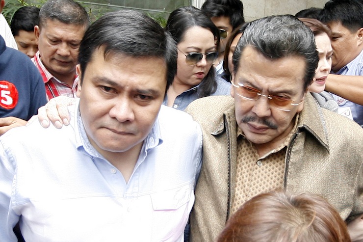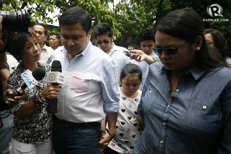 Estrada's surrender on Monday, June 23, (or "voluntary arrest" as the Philippine National Police would put it) was a family affair as his relatives – led by former president and now Manila Mayor Joseph "Erap" Estrada, who was also charged with plunder alongside his son 13 years ago, and convicted for the crime – accompanied him.